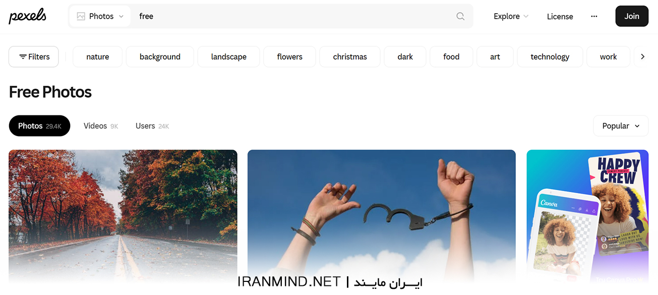 2. سایت عکس با کیفیت Pexels ؛ ترکیب عکس و ویدئو در یک جا