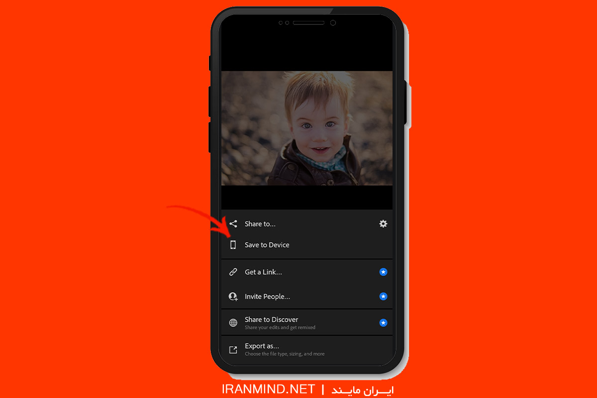 5. save to device را بزنید و تمام! از نتیجه عکس لذت ببرید.