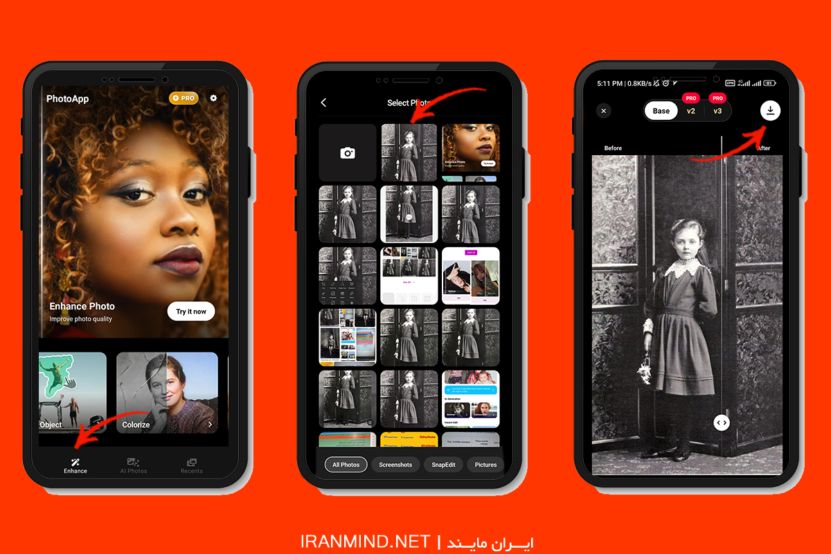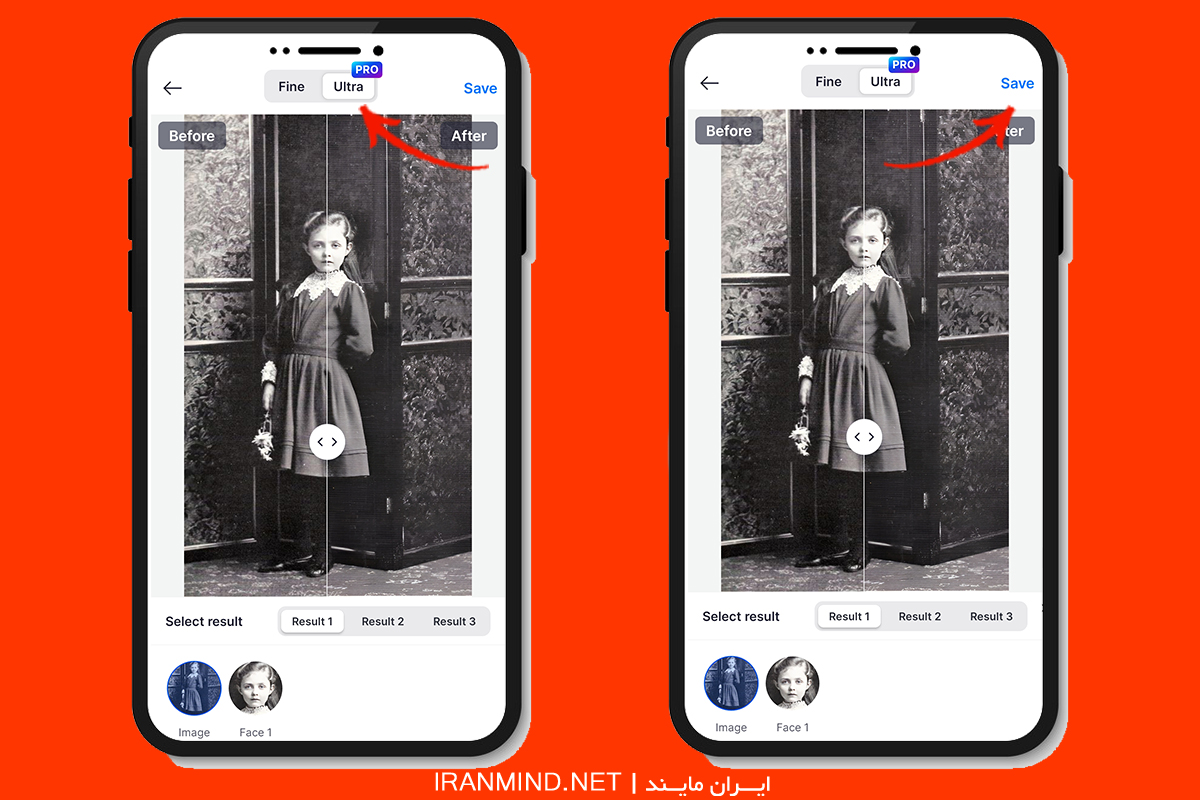 - باکیفیت شدن عکس به وضوح قابل مشاهده است. از گوشه بالا سمت راست عکس را ذخیره کنید.