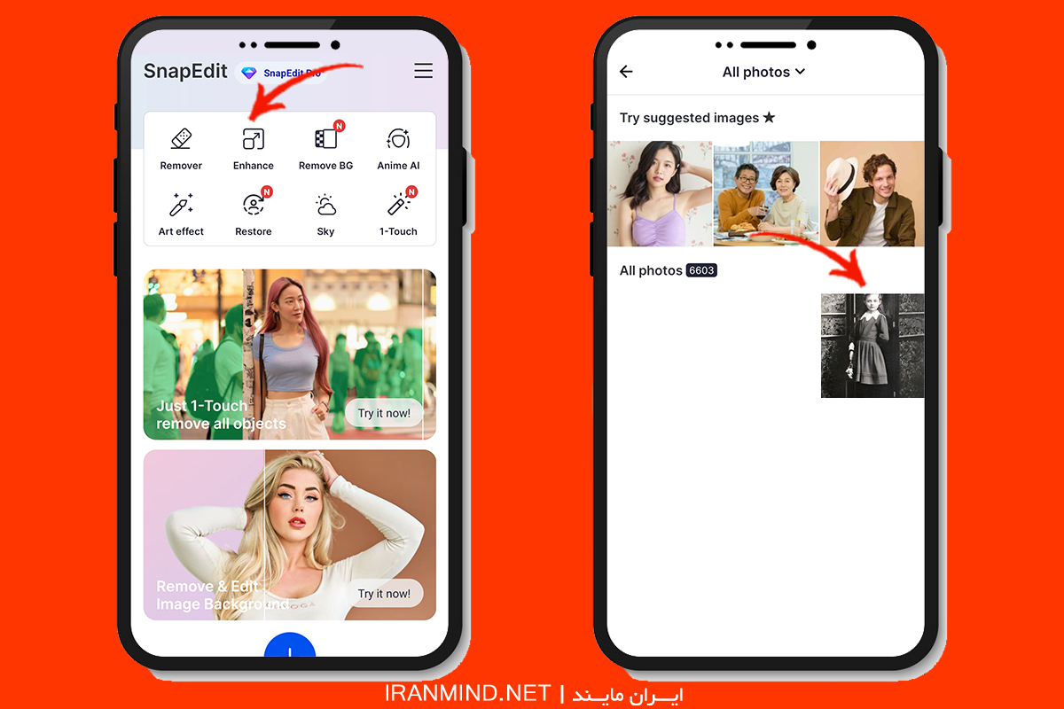 4. بالا بردن کیفیت عکس با گوشی و برنامه snapedit