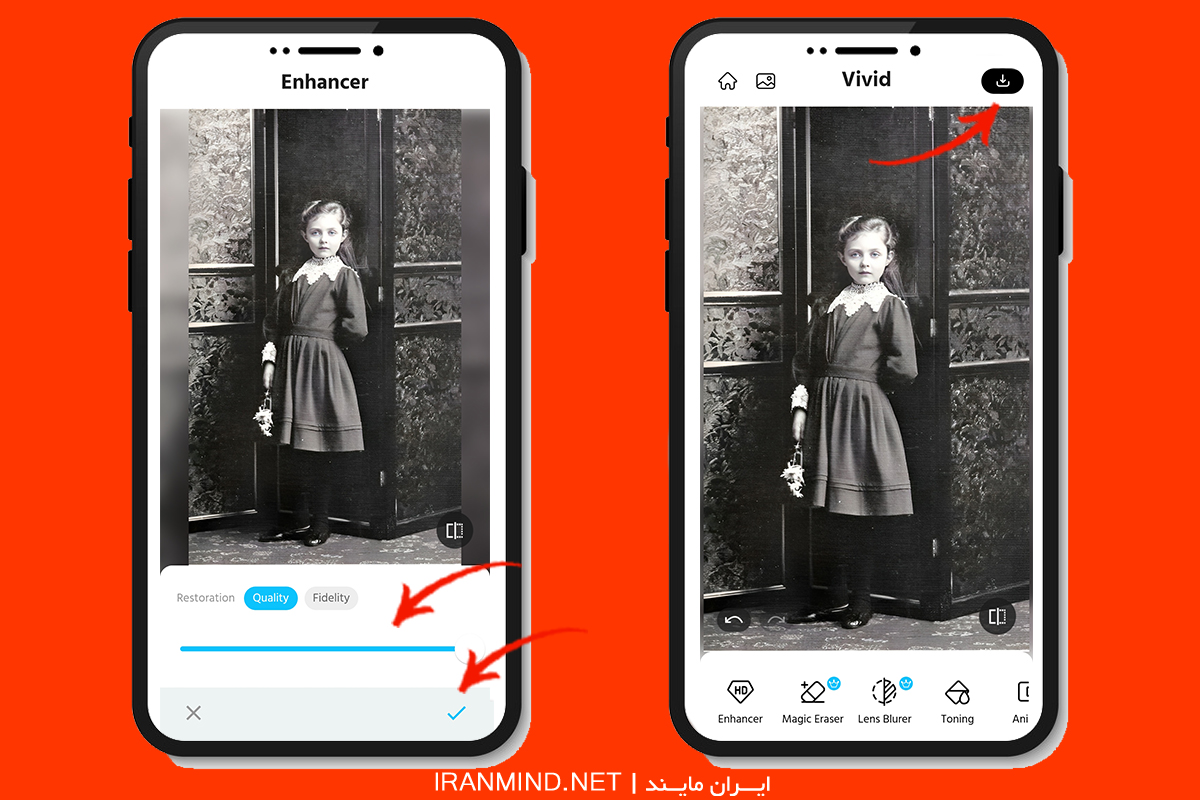 صبر کنید تا سیستم کار خودش را بکند؛ حالا با تغییر کیفیت شگفت انگیز عکستان رو به رو خواهید شد که با زدن دکمه دانلودش می کنید.