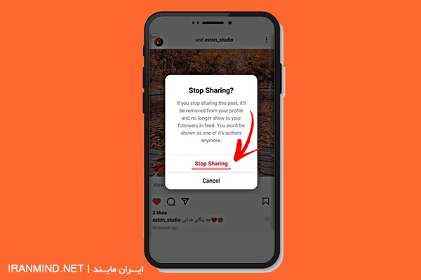 - سپس گزینه ی توقف اشتراک گذاری یا Stop sharing را بزند و حذف پست را تایید کند. به همین راحتی!