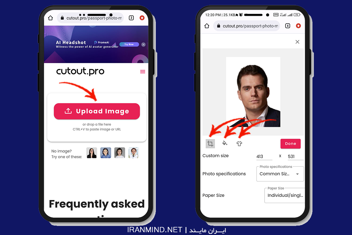 - تنظیمِ دقیقِ سایزِ تصویر مطابق کشور/مدرک مورد نظر