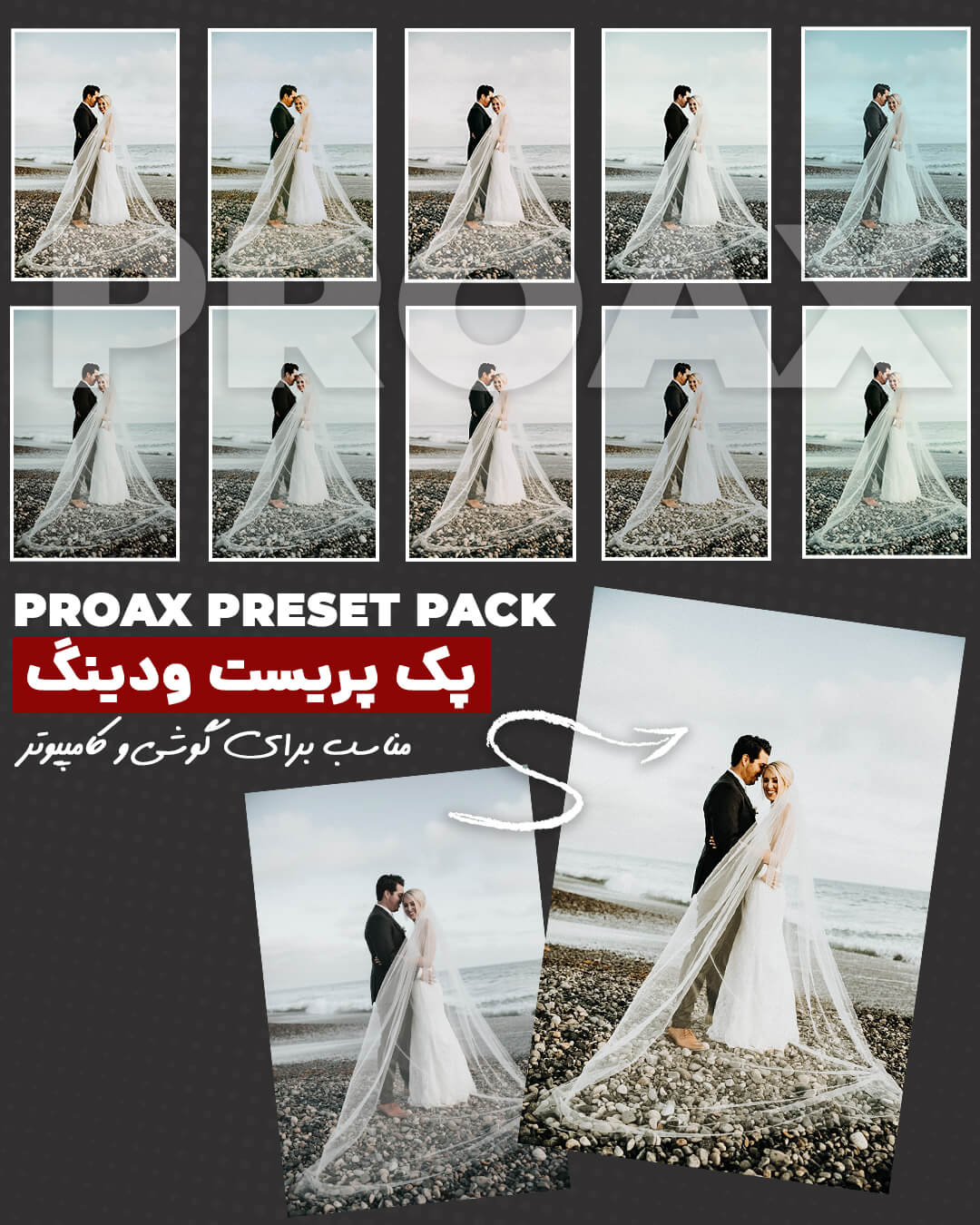 از پرترههای سینمایی و عکسهای استایل گرفته تا طبیعت، غذا، عروسی و تصاویر سیاه و سفید، هر پریست بهگونهای تنظیم شده که رنگ، نور و کنتراست را به شکلی متعادل و جذاب بهبود دهد.